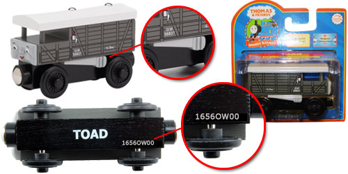 Toad is a grey wooden vehicle with white roof, with an item number of LC99027.
